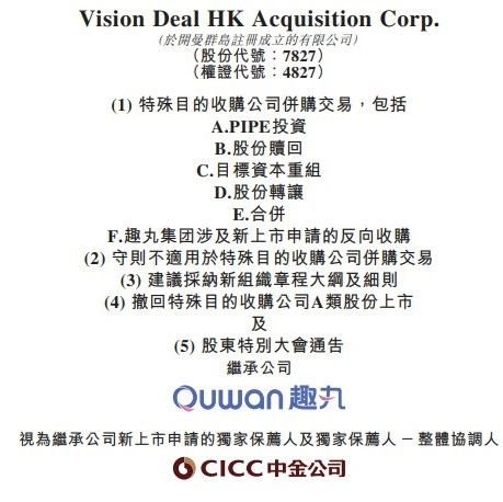 趣丸集团,拟借壳SPAC香港上市,视同IPO递表,中金独家保荐