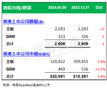 一、目前香港上市公司共2606家(截至2024年4月30日)