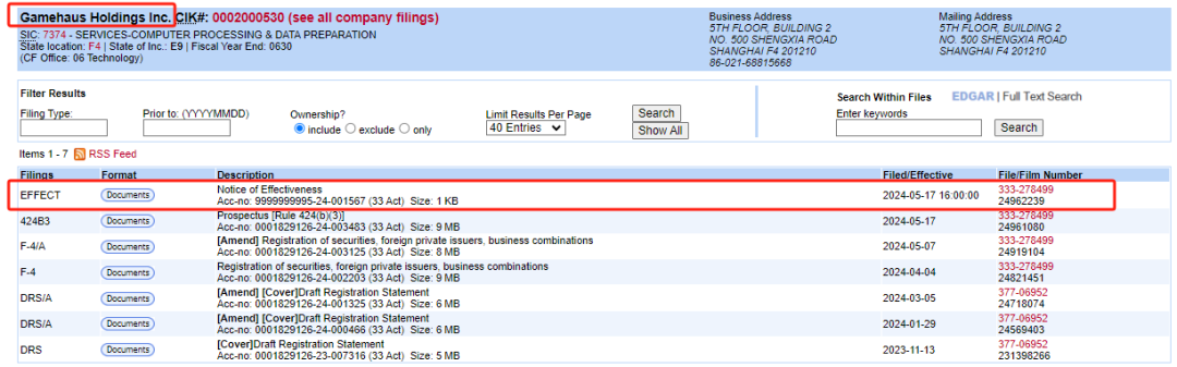 5月17日,重庆灏瀚取得美国证监会的注册文件生效函(Notice of Effectiveness),表明SEC对注册发行的新股同意生效。