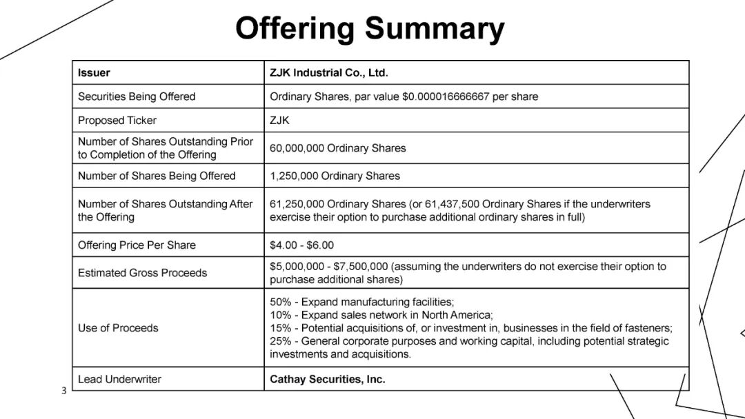 中金科工业,拟以每股4至6美元发售125万股,募资或达750万美元。