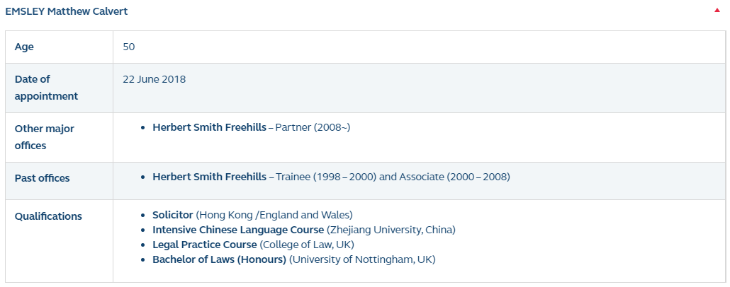 2023年上市委员会名单中包括了5名新成员,以及上市委员会的主席及副主席名单变动,其中来自史密夫斐尔律师事务所的Matthew Emsley获委任为副主席,Matt此前于2018年6月22日获委任上市委员会委员。