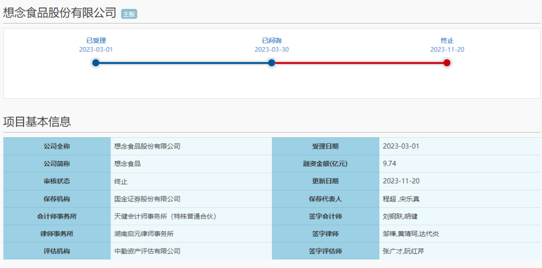 想念食品,最早于2020年7月5日首次预披露招股书,2023年3月31日在上交所提交招股书申报稿,期间经历一轮问询,直至撤回IPO申请。