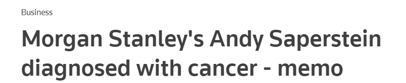 外媒报道,摩根士丹利联席总裁(co-president)Andy Saperstein被诊断出患有癌症,计划在治疗同时继续工作。